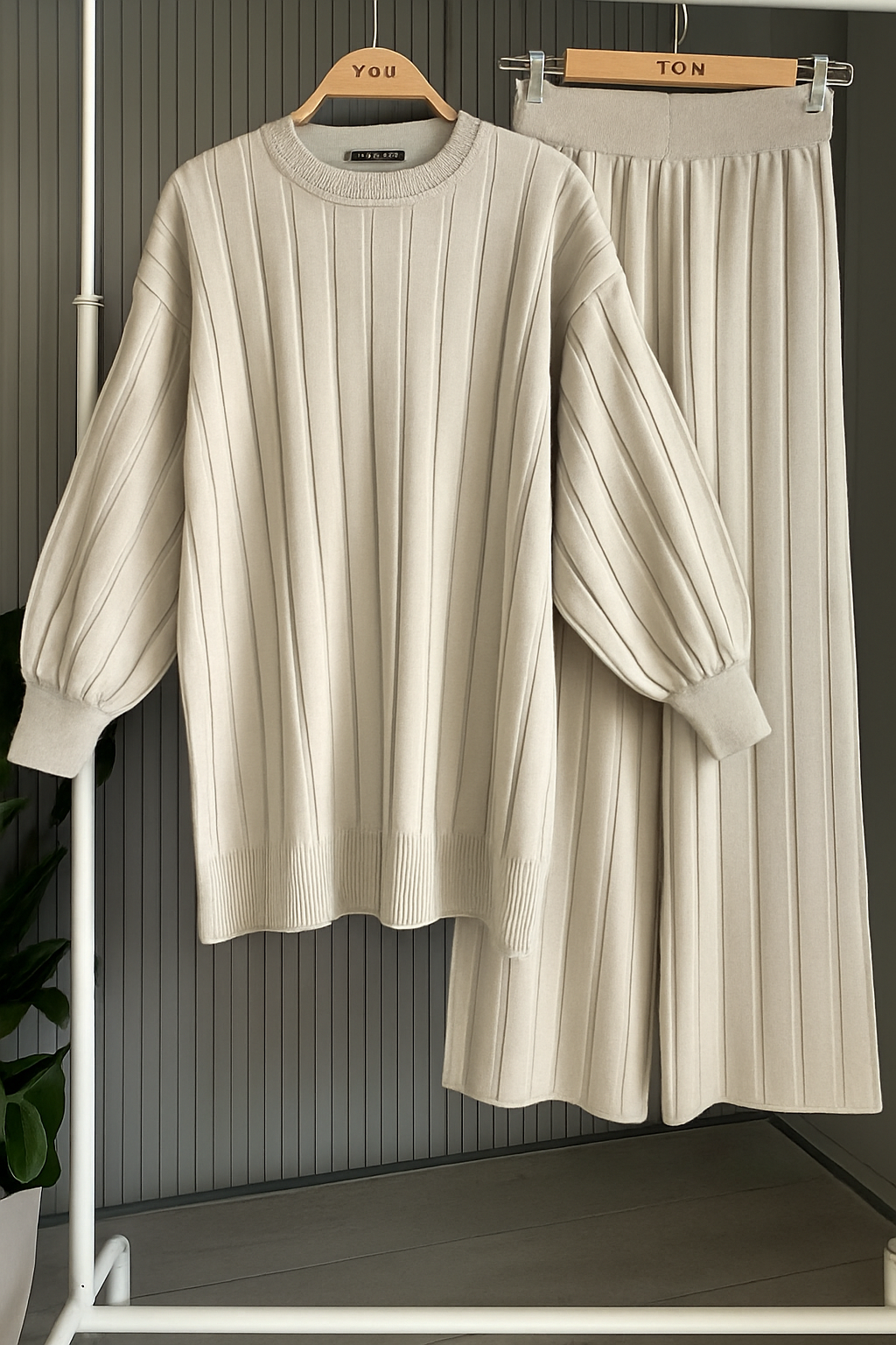 Ceylin Takım, rahat kesimi ve merserize triko dokusuyla hem günlük kullanım hem de şık kombinler için uygundur.
