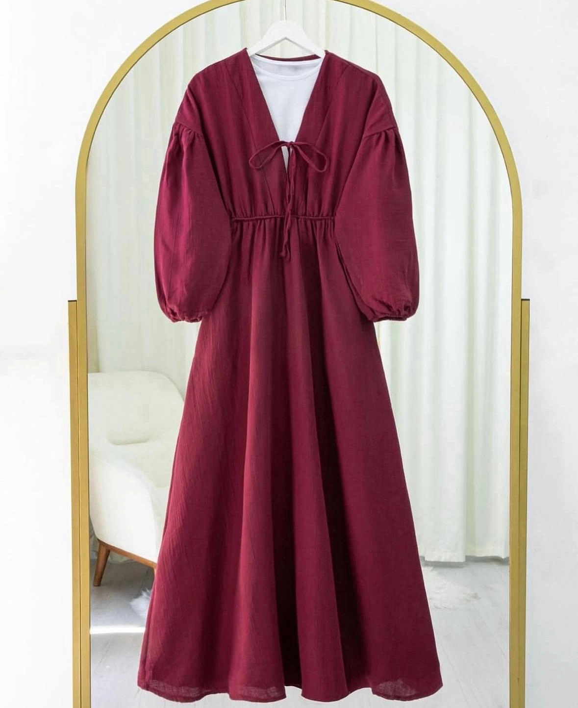 Zarif balon kol detayıyla öne çıkan elbisemiz, soft keten kumaşı sayesinde hafif ve rahat bir kullanım sunar. Akıcı duruşu ve sade şıklığıyla günlük ve özel kombinler için ideal bir tercih.