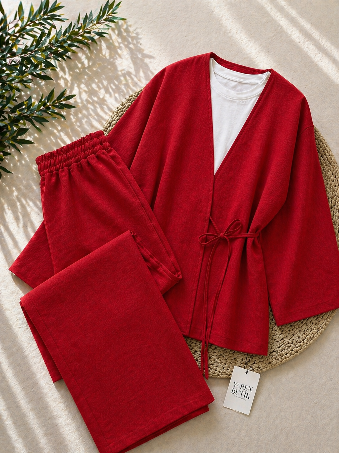 Minimal ve zarif görünümüyle öne çıkan bu takım, pamuklu keten dokulu kumaşı ve rahat kalıbıyla konforu şıklıkla buluşturuyor. Günlük stilinizde sade ama güçlü bir görünüm oluşturur.