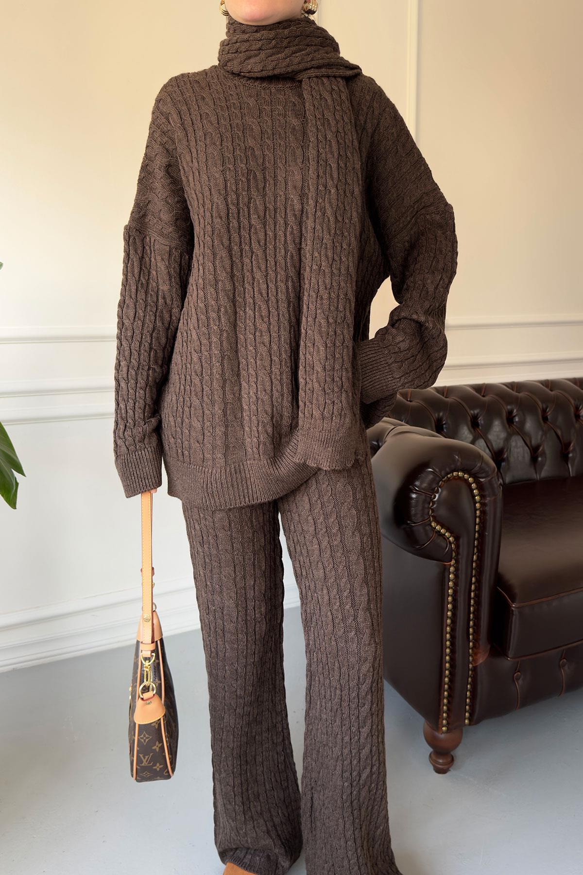 Soğuk kış günlerinde ve mevsim geçişlerinde hem şıklığı hem de rahatlığı bir arada sunan Atkılı Triko Takım, yumuşacık dokusuyla gün boyu konfor sağlar. Modern kesimi ve takım ile uyumlu şalı sayesinde tek parçada zahmetsiz şıklık elde etmenize yardımcı olur.